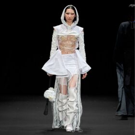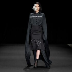 Por su parte, Elizabeth Salim llevó a Tokio una propuesta conceptual con su colección titulada Hanahaki, inspirada en la enfermedad ficticia que hace florecer los pulmones a causa de un amor no correspondido, la diseñadora trasladó esa metáfora al terreno ecológico, preguntándose qué ocurriría si la Tierra decidiera no corresponder más a la humanidad. El resultado fueron doce looks que exploraron la intersección entre el pensamiento japonés con referencias al bukimi, ese inquietante sentimiento de perfección artificial y el surrealismo mexicano.