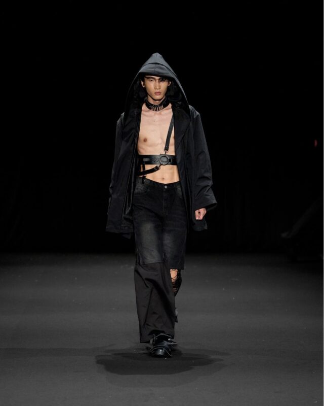 Con quince siluetas cuidadosamente desarrolladas, Morales presentó una cápsula atemporal que funcionó la cultura japonesa y la mexicana, el uso de mezclillas de algodón trabajadas con láser, piel vegana, rafia y serigrafía reflejó su interés por la innovación textil, mientras que la paleta de grises contrastada con acentos neón aportó un aire vibrante y contemporáneo.