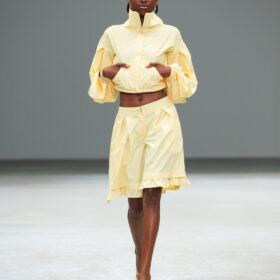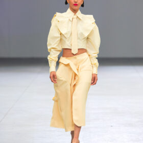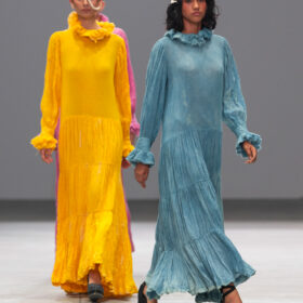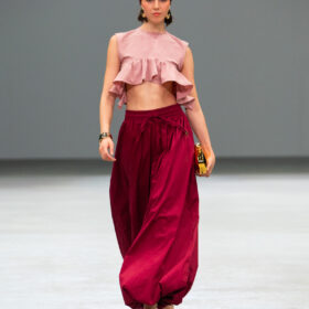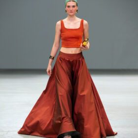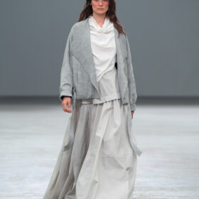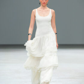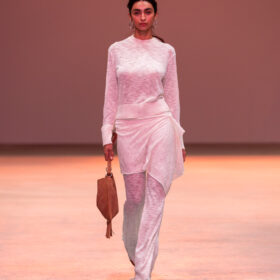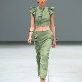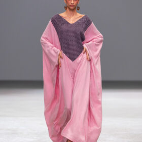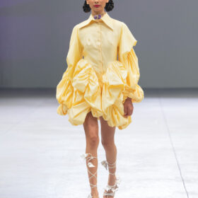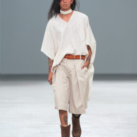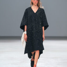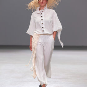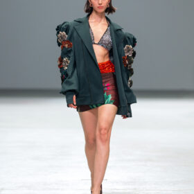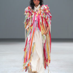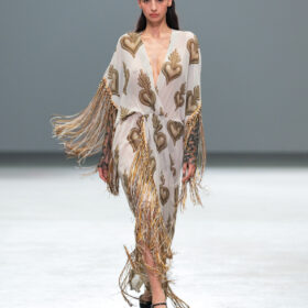 Las prendas evocan ritos colectivos y momentos de entrega, transformando al cuerpo en símbolo. Inspirada en emociones, imágenes oníricas y seres míticos, la colección construye un imaginario que habita entre lo ancestral y lo contemporáneo, con siluetas que se sienten atemporales. Takamura reafirma así más de diez años de trabajo, con una propuesta intensa, luminosa y cargada de simbolismo, siendo una de las colecciones más disruptivas de Fashion Week.