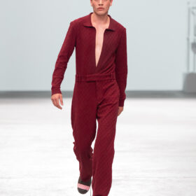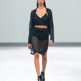 El diseñador tapatío Alfredo Martínez se inspira en la intensidad emocional de Possession (1981) de Andrzej Żuławski y traslada esa tensión a un contexto contemporáneo. Las prendas oscilan entre control y ruptura, con siluetas precisas, cortes asimétricos y texturas híbridas, construyendo una narrativa donde la moda funciona como armadura y reflejo de la identidad, fuerza y vulnerabilidad conviven en cada diseño.