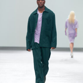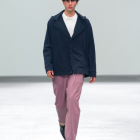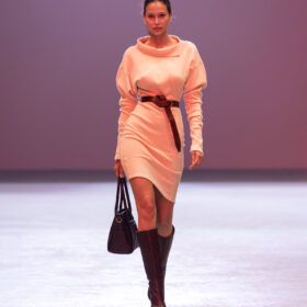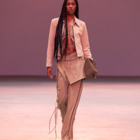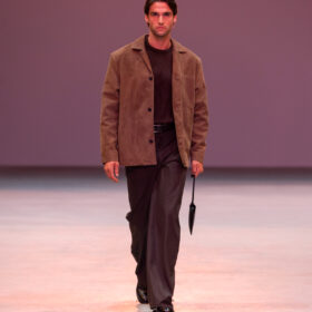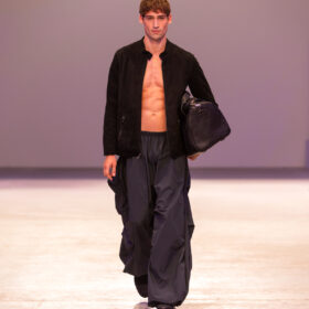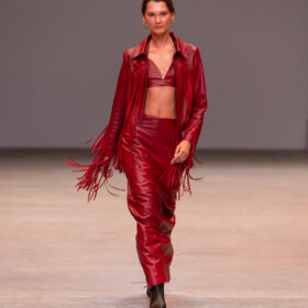 VARDO presentó una colección inspirada en el concepto budista del bardo, ese estado intermedio entre la pérdida y el renacimiento. Las prendas combinan siluetas estructuradas, cueros artesanales y detalles que reflejan la dualidad, construyendo una narrativa de transformación.